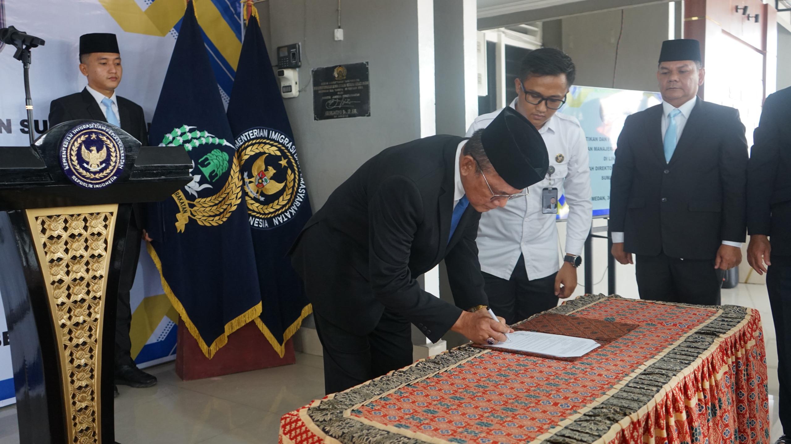 Kantor Wilayah Direktorat Jenderal Pemasyarakatan (Ditjenpas) Sumatera Utara menggelar pelantikan dan pengambilan sumpah/janji jabatan manajerial dan non manajerial di lingkungan Kanwil Ditjenpas Sumut, Selasa (30/09). Acara berlangsung khidmat di halaman kantor, dipimpin langsung oleh Kepala Kantor Wilayah Ditjenpas Sumut, Yudi Suseno.