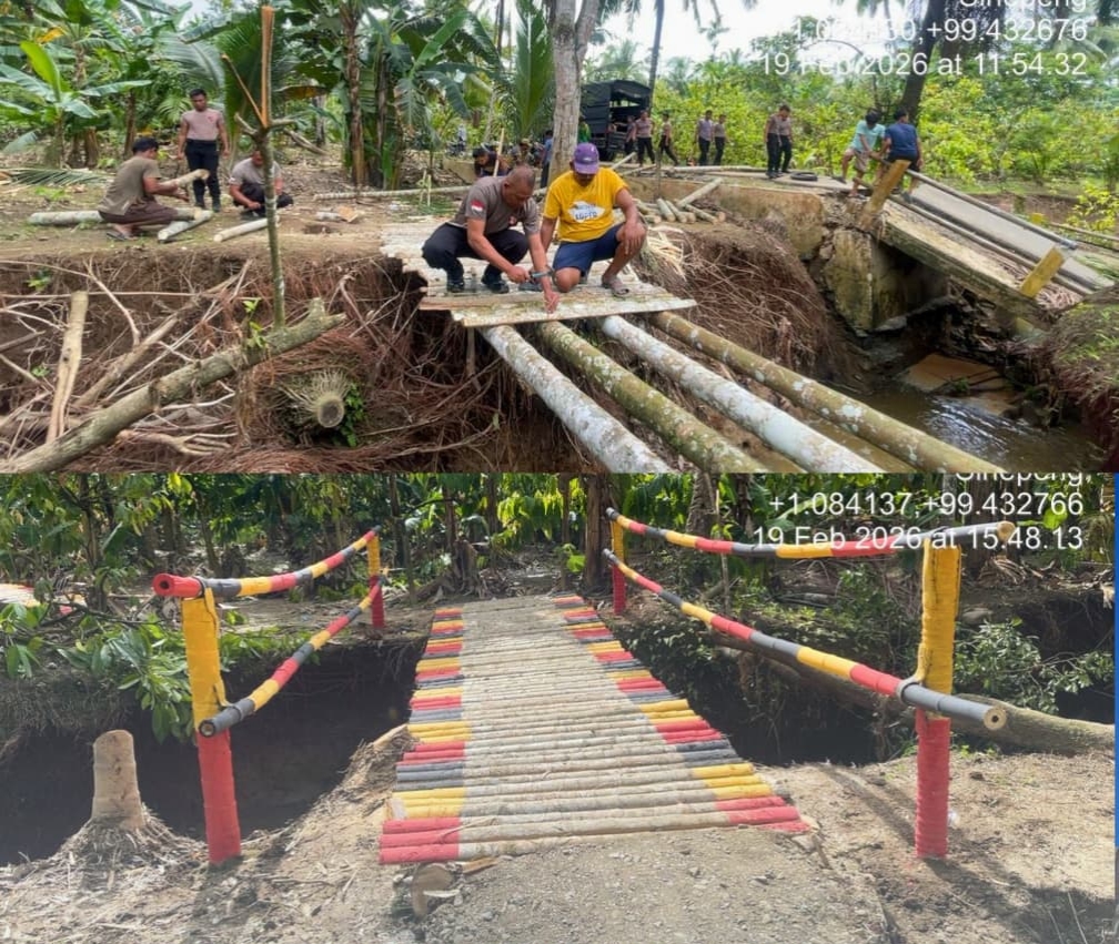 Pembangunan jembatan darurat tersebut dilaksanakan pada 19 Februari 2026 oleh 12 personel Batalyon C di bawah pimpinan Danton II Kompi 2/C IPDA Andrico P. Sembiring, S.H., dengan pengawasan langsung Danyon C Kompol Zaenal Muhlisin.