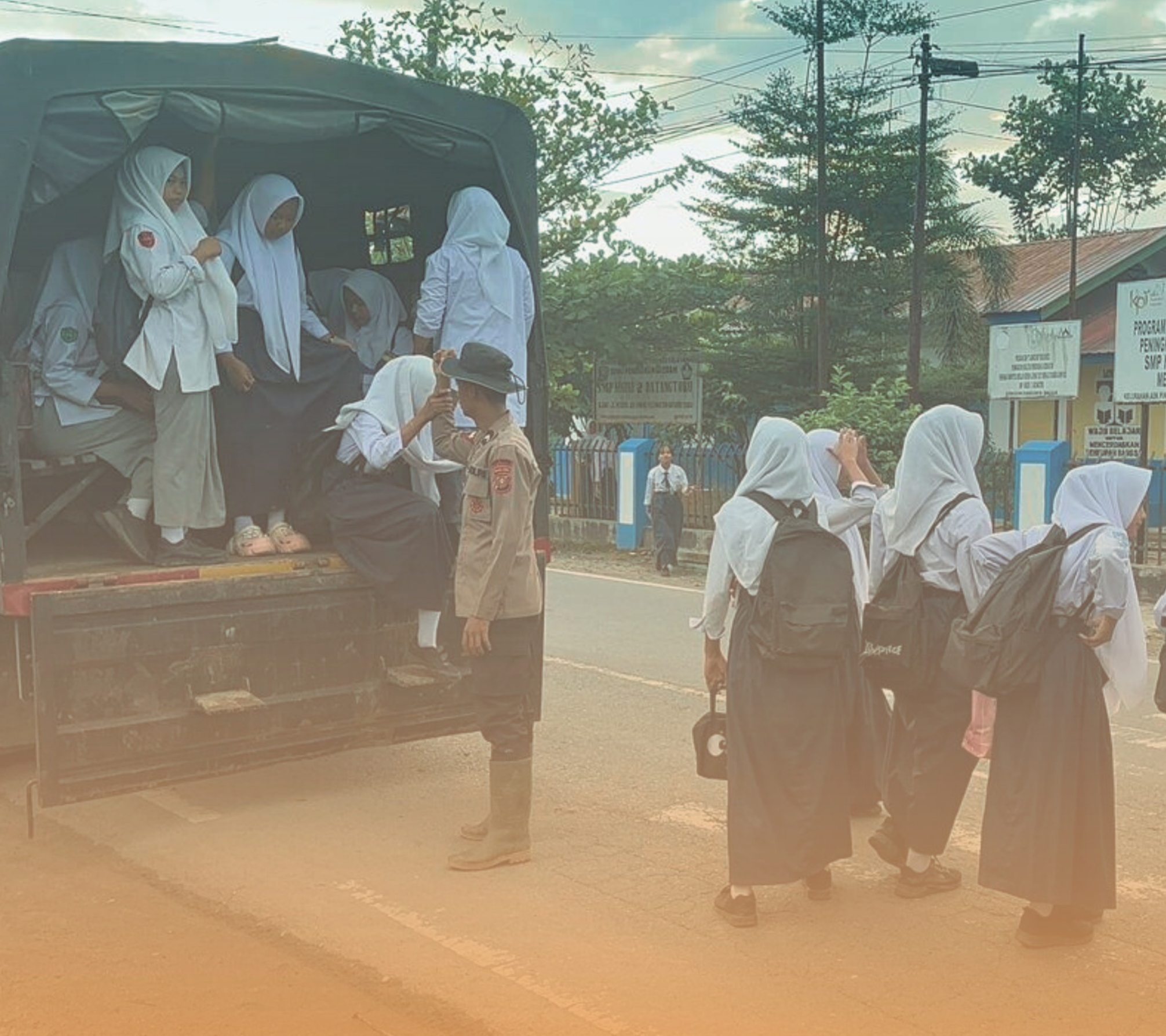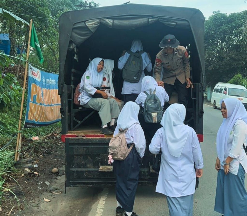 Dipimpin oleh personel Posko Utama, Briptu Hadi Lingga, para personel Brimob secara langsung menjemput anak-anak dari rumah masing-masing dan mengantarkan mereka hingga ke sekolah tujuan. Langkah ini dilakukan untuk memastikan kegiatan belajar mengajar tetap berjalan meskipun masyarakat masih berada dalam tahap pemulihan pascabencana.
