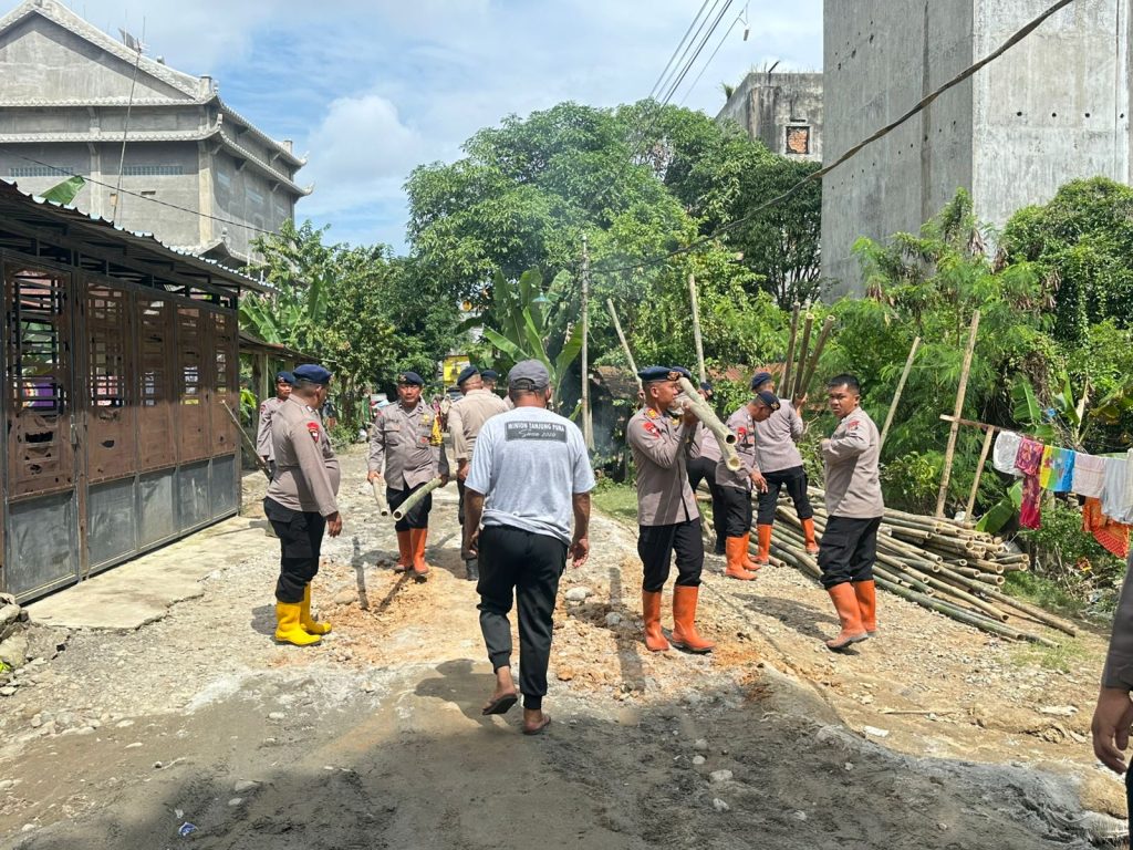 LANGKAT – Personel Batalyon-A Sat Brimob Polda Sumut kembali menunjukkan komitmennya dalam penanganan bencana dengan melanjutkan perbaikan tanggul yang jebol di Kampung Pagar, Lingkungan II, Kecamatan Tanjung Pura, Kabupaten Langkat.