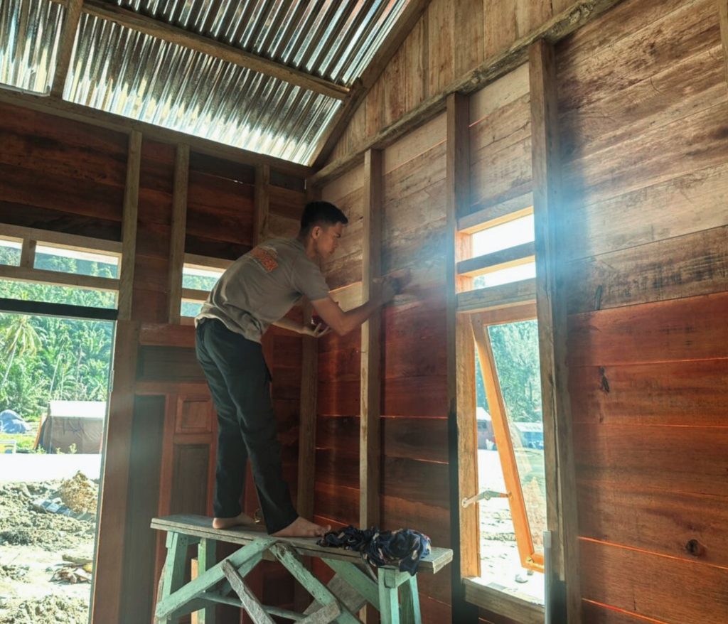Di sisi lain, bentuk kepedulian juga ditunjukkan melalui pembuatan parit di samping rumah Bapak Tony Panggabean yang bertujuan untuk memperlancar aliran air dan mencegah genangan. Pekerjaan ini telah mencapai progres sekitar 30 persen dan akan terus dilanjutkan secara bertahap. Sementara itu, pengecatan rumah hunian sementara di Desa Garoga juga terus berjalan dengan capaian pekerjaan mencapai 70 persen.