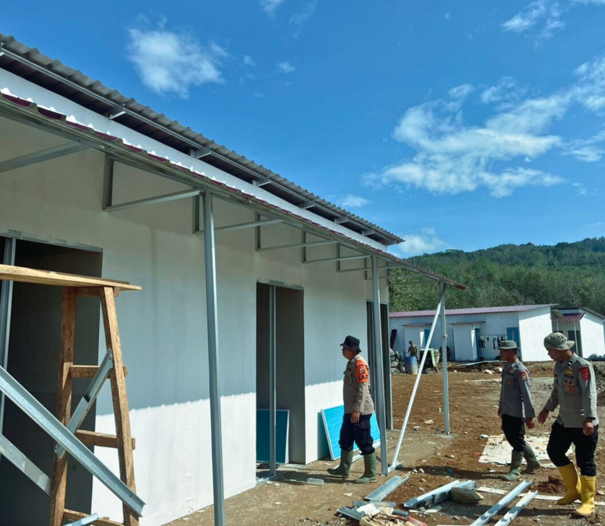 Dalam patroli pengamanan pembangunan Huntara di Posko Brimob Hapesong Lama, personel Brimob memastikan proses pembangunan berjalan aman dan tertib. Saat ini, pembangunan Huntara seluas kurang lebih 0,8 hektare tersebut mencakup 29 kopel atau sekitar 145 pintu. Dari jumlah tersebut, empat komunal Huntara telah rampung 100 persen, sementara unit lainnya masih berada dalam berbagai tahapan pembangunan. Lingkungan sekitar lokasi juga telah dibersihkan guna mendukung kenyamanan masyarakat yang terlibat dalam proses pembangunan.