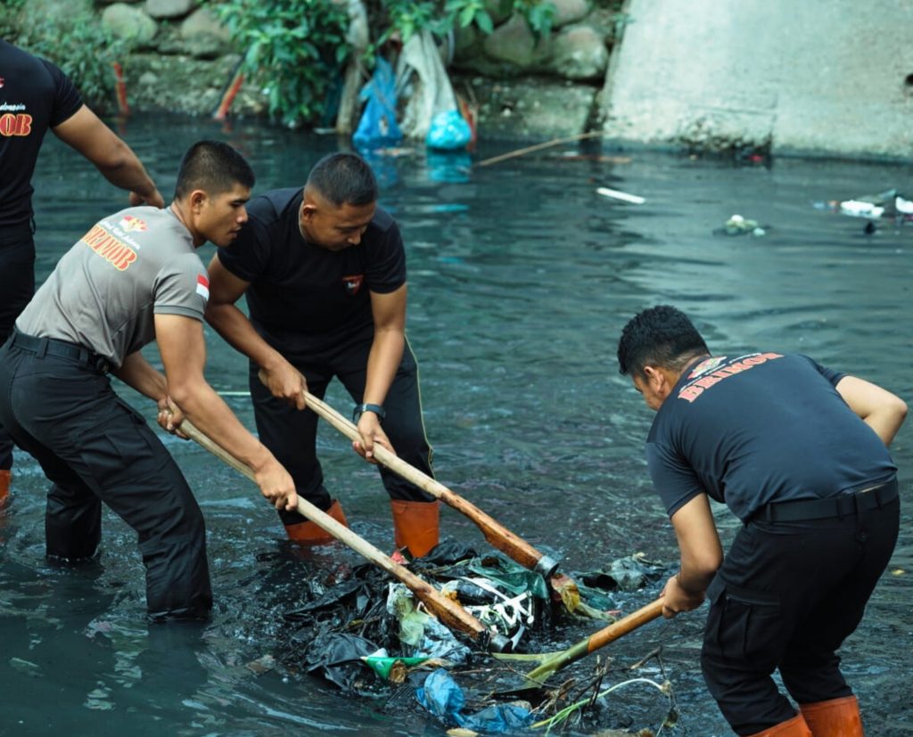 Medan – Kepedulian terhadap lingkungan kembali ditunjukkan oleh Personel Satuan Brimob Polda Sumut melalui aksi kurve atau pembersihan sungai dan jembatan di Jalan Bhayangkara, Kelurahan Indra Kasih, Kecamatan Medan Tembung, Kota Medan, Selasa (03/02/2026).