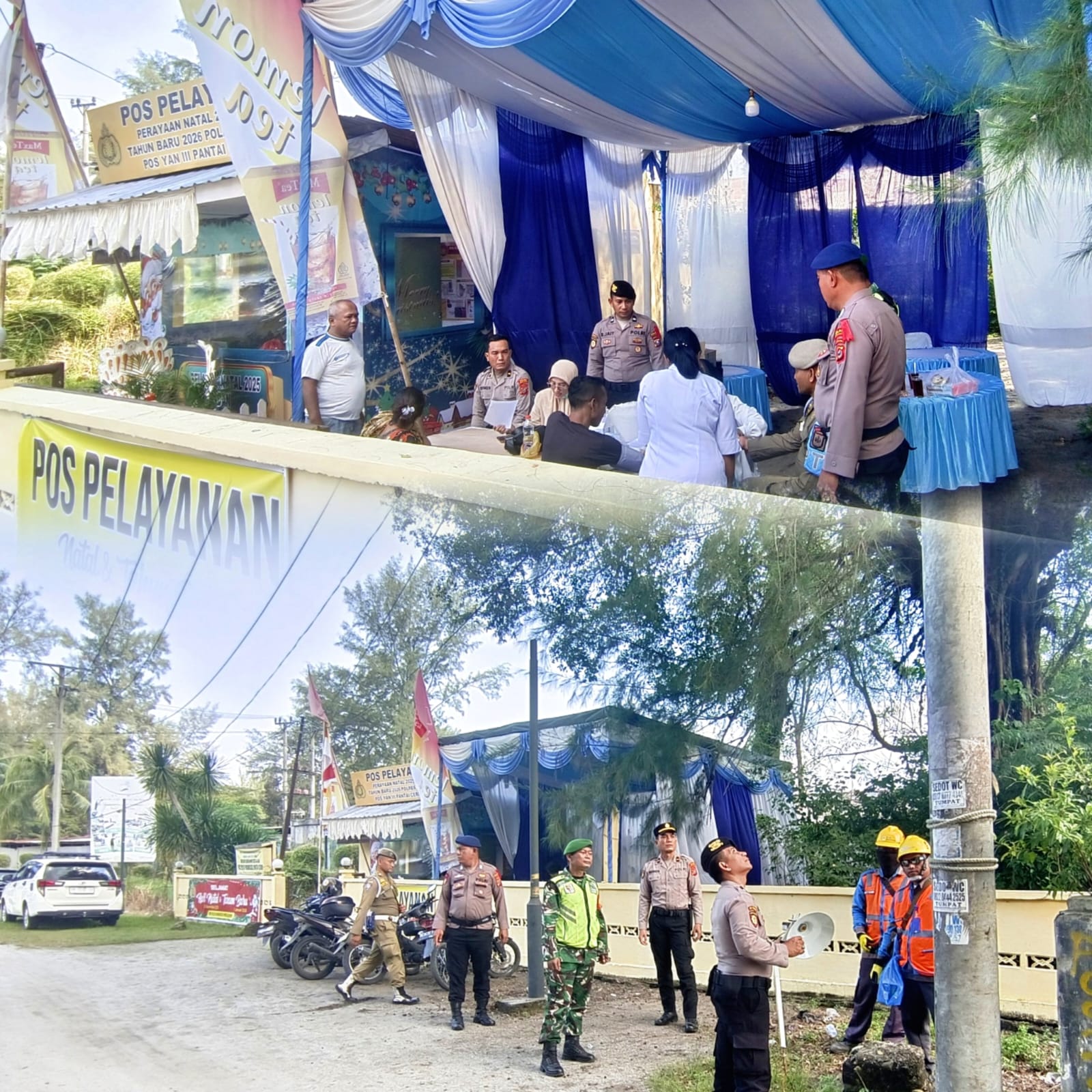 Sergai — Pos Pelayanan Natal dan Tahun Baru (Posyan Nataru) Pantai Cermin hadir sebagai ruang kepedulian ditengah lalu lalang kendaraan libur akhir tahun. Warga yang melintas berhenti sejenak, memeriksakan kesehatan mereka secara gratis, Selasa (23/12/2025). Suasana Posyan objek wisata di Pantai Cermin, Kabupaten Serdang Bedagai (Sergai), Sumatera Utara, ini terasa lebih hangat dan bersahabat.