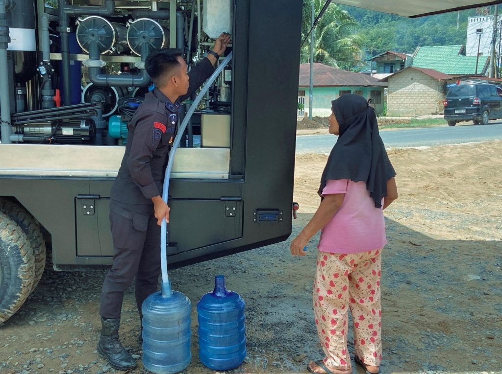 Sementara itu, di Desa Sibuluan Nalambok, Kecamatan Sarudik, 1 SSR Personel SAR Batalyon A di bawah pimpinan Bripda Franky melaksanakan pendistribusian air bersih kepada warga dengan menggunakan alat water treatment milik Satbrimob Polda Sumut. Kehadiran fasilitas tersebut sangat membantu masyarakat dalam memenuhi kebutuhan air bersih sehari-hari.