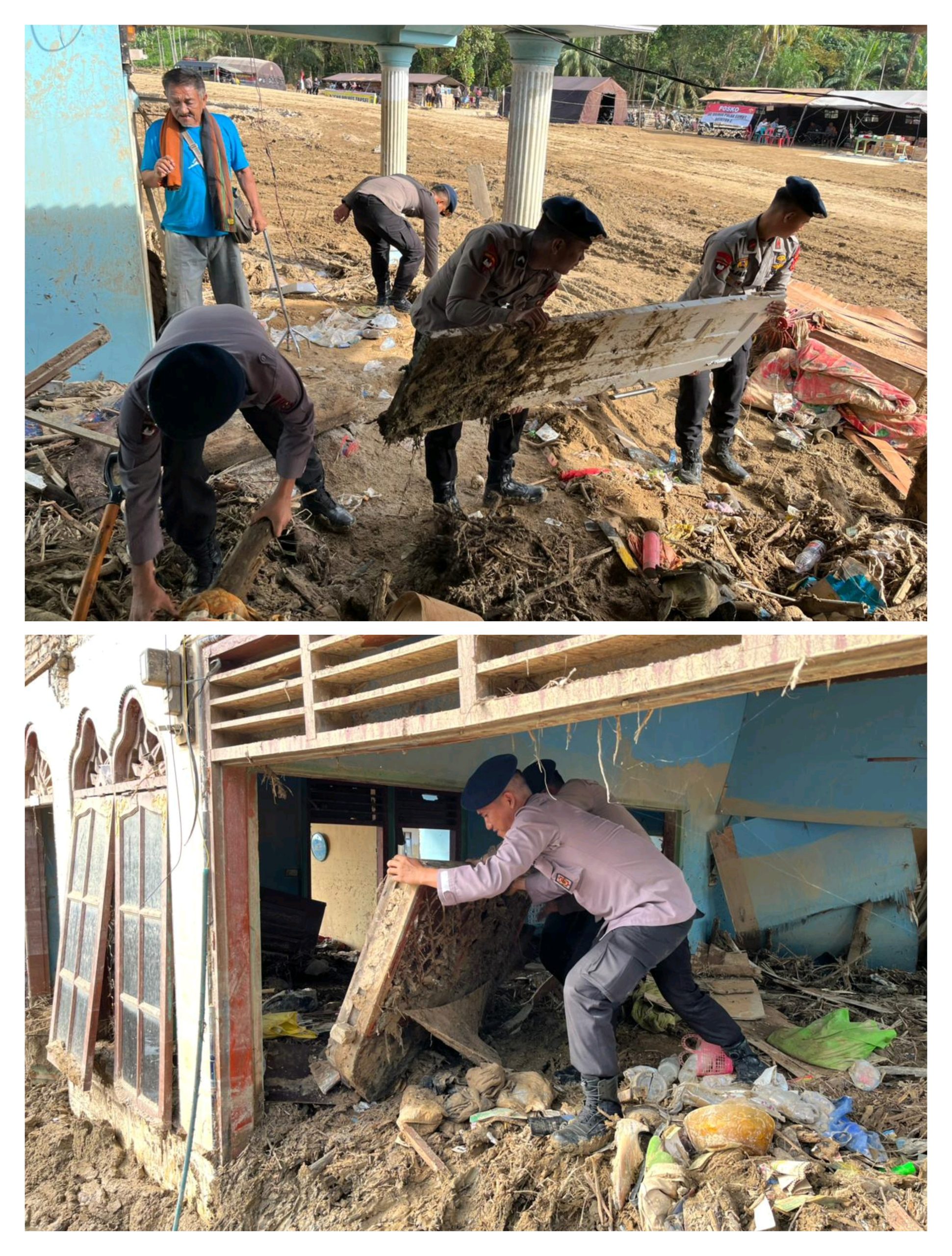 Selain pembersihan sekolah, Satbrimob Polda Sumut juga melakukan kegiatan kemanusiaan berskala lebih luas di wilayah yang sama. Di bawah pimpinan Danki 2 Batalyon C, Iptu Januar Fazhari, S.H., personel bersama organisasi masyarakat setempat melakukan pembersihan rumah-rumah warga serta fasilitas ibadah, termasuk masjid yang sempat tertimbun lumpur dan puing kayu.
