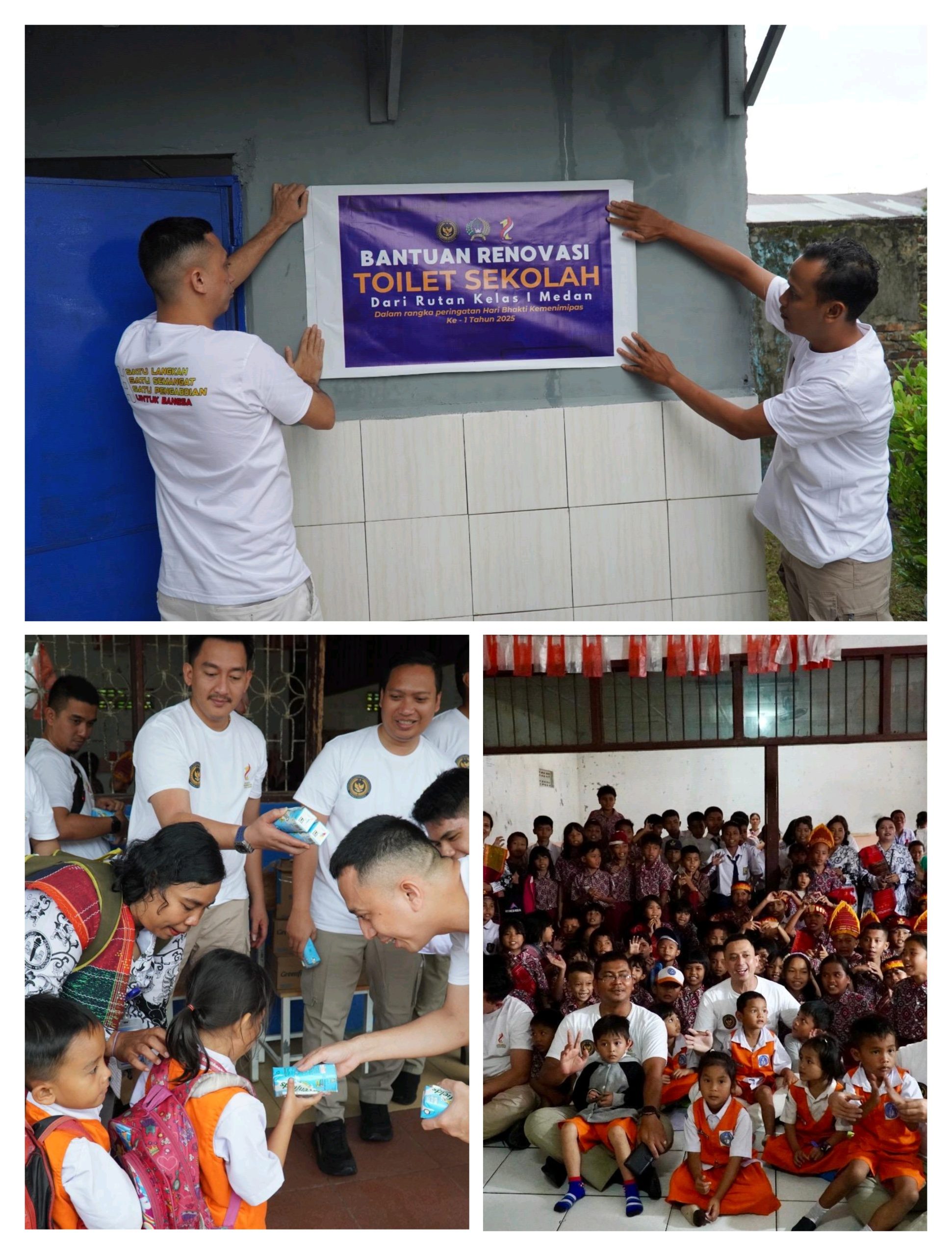 Medan — Masih dalam rangka memperingati Hari Bakti Kemenimipas ke-1 Tahun 2025, Rumah Tahanan Negara (Rutan) Kelas I Medan melaksanakan kegiatan sosial bertajuk “Imipas Peduli” dengan memberikan bantuan renovasi fasilitas toilet serta pembagian susu kepada siswa SD dan SMP Taruna Karya Medan, Jln. Lembaga Pemasyarakatan. Kegiatan ini sekaligus bertepatan dengan momentum Hari Guru Nasional, yang menambah makna tersendiri dalam upaya mendukung dunia pendidikan. Selasa (25/11/2025).