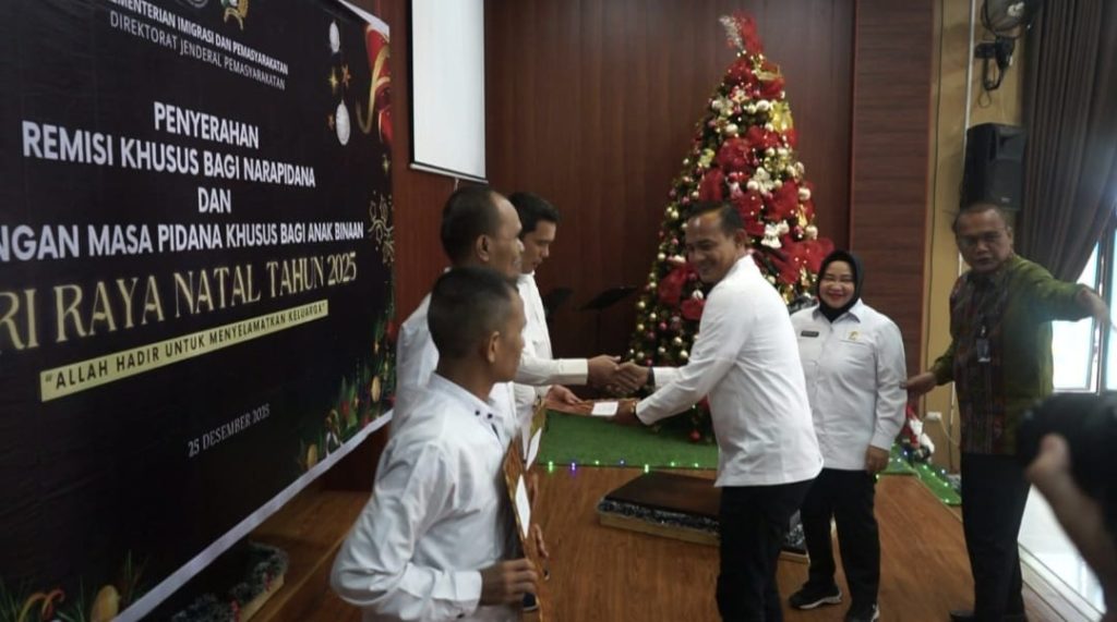Medan – Dalam rangka memperingati Hari Raya Natal Tahun 2025, Kantor Wilayah Direktorat Jenderal Pemasyarakatan Sumatera Utara melaksanakan pemberian Remisi Khusus dan Pengurangan Masa Pidana kepada Narapidana dan Anak Binaan yang telah memenuhi persyaratan sesuai ketentuan peraturan perundang-undangan.