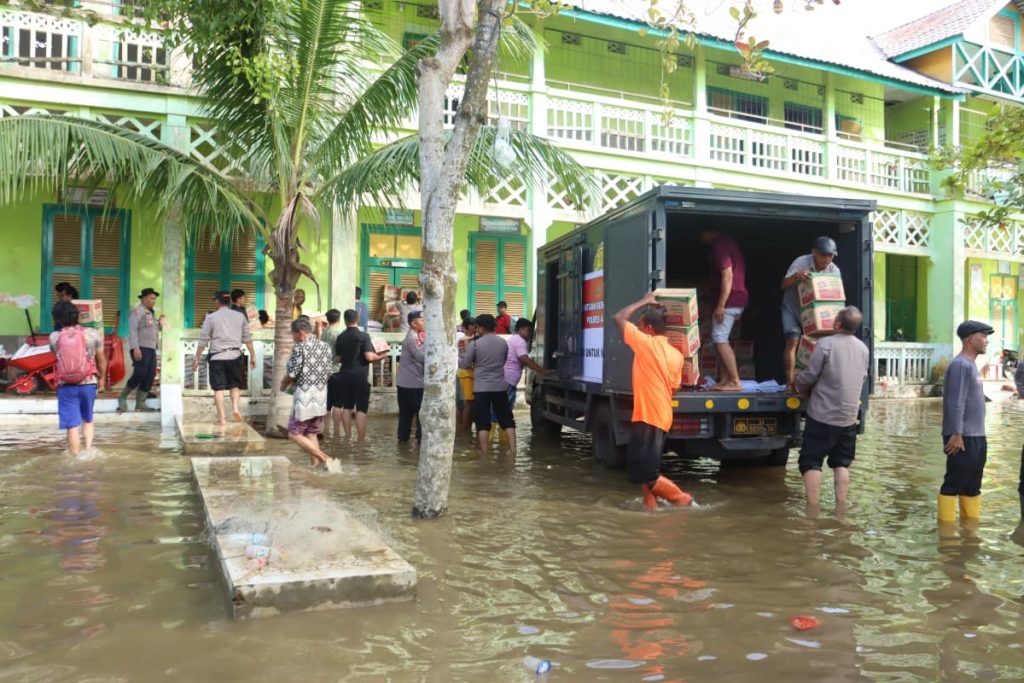 Kapolres Langkat dan Kapolres Jajaran Salurkan Bantuan Banjir untuk Warga Institut Jam’iyah Mahmudiyah Tanjung Pura