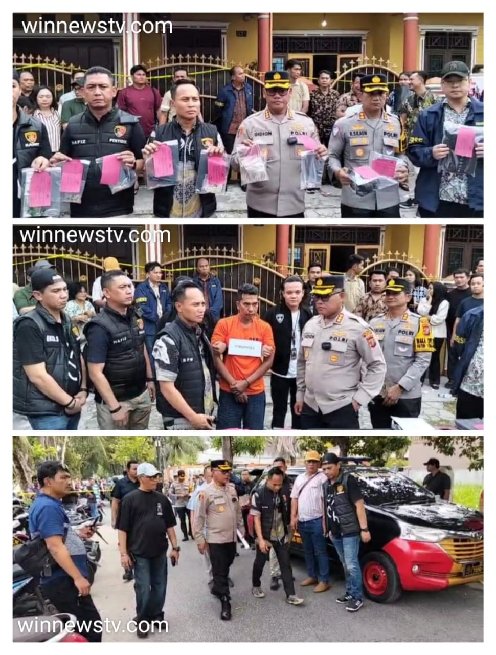 Medan – Kapolrestabes Medan, Kombes Pol Gidion Arif Setyawan, melaksanakan Konferensi pers di depan Rumah korban mengucapkan turut berduka cita dan berbelasungkawa kepada keluarga korban dalam peristiwa kejahatan tersebut.