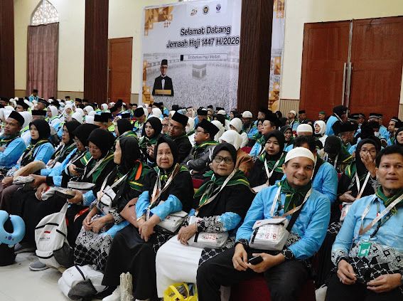 Medan – Sebanyak 360 jemaah haji yang tergabung dalam Kelompok Terbang (Kloter) 01 Embarkasi Medan resmi memasuki Asrama Haji Medan, Selasa (21/04), sebagai tahapan awal sebelum diberangkatkan ke Tanah Suci. Kedatangan kloter perdana ini menandai dimulainya operasional penyelenggaraan ibadah haji tahun ini dari Embarkasi Medan, sekaligus Tahun 2026 menjadi momen bersejarah untuk Kementerian Haji dan Umrah Republik Indonesia secara resmi mengelola dan memberangkatkan jemaah haji.
