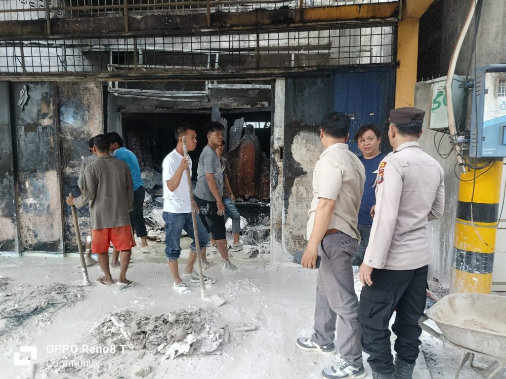 Kapolres Pelabuhan Belawan AKBP Rosef Efendi, SIK., MH., CPHR., melalui Kabag Ops Kompol Jan Piter Napitupulu, SH., MH., menjelaskan bahwa peristiwa kebakaran tersebut diduga berasal dari percikan api saat proses pencampuran cat dengan tiner.