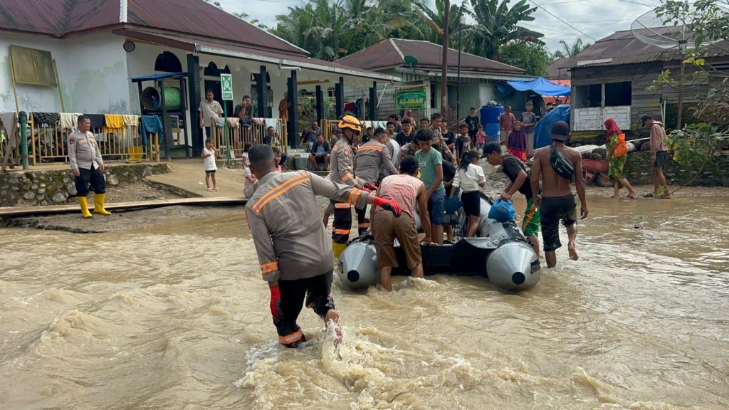 Tapanuli Selatan – Banjir kembali melanda sejumlah wilayah di Kabupaten Tapanuli Selatan, Sumatera Utara. Merespons situasi tersebut, Kepolisian Daerah Sumatera Utara melalui Unit Polsatwa K-9 Direktorat Samapta segera mengalihkan prioritas tugas di lapangan dengan mengutamakan bantuan kemanusiaan dan evakuasi warga terdampak.