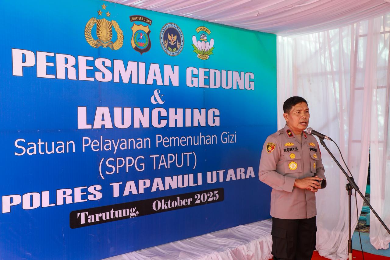 TARUTUNG – Kepolisian Daerah Sumatera Utara (Polda Sumut) terus menunjukkan komitmennya dalam mendukung program nasional peningkatan kualitas gizi bagi anak bangsa. Hal ini diwujudkan melalui peresmian Satuan Pelayanan Pemenuhan Gizi (SPPG) Polres Tapanuli Utara yang dilaksanakan pada Rabu (29/10/2025), pukul 09.30 WIB, bertempat di Gedung SPPG Polres Taput, Jalan KS. Tubun, Kelurahan Hutatoruan X, Kecamatan Tarutung.