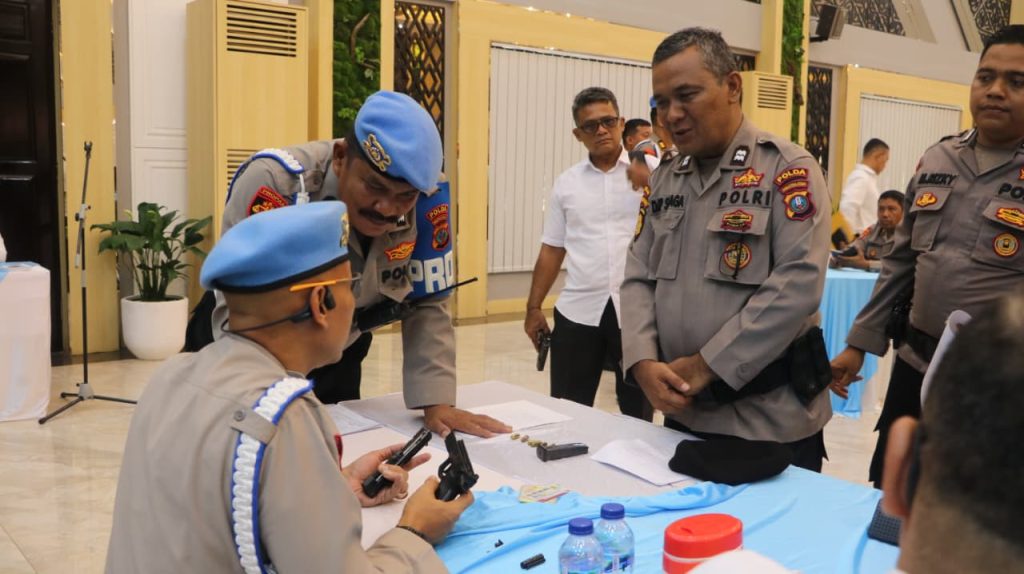 Medan, 13 April 2026 – Divisi Profesi dan Pengamanan (Propam) bersama SLOG Mabes Polri melaksanakan kegiatan penegakan ketertiban dan disiplin (Gaktibplin) berupa pemeriksaan senjata api (senpi) organik Polri di wilayah hukum Polda Sumatera Utara. Kegiatan berlangsung di Aula Tribrata Polda Sumut, Senin, dipimpin oleh Beny Arjanto bersama tim dari Mabes Polri.