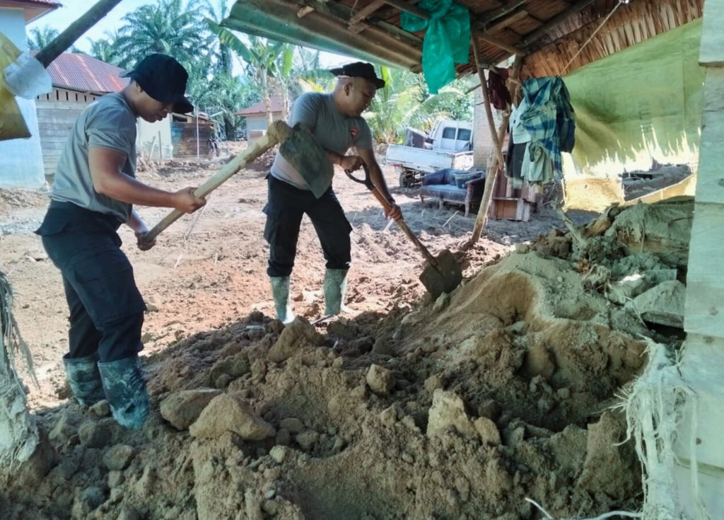 Dalam pelaksanaannya, 1 Peleton di bawah kendali Danton 3 AIPTU Pramudian fokus melakukan loading tanah, pembukaan lahan HUNTAP di Desa Napa, serta pembersihan halaman rumah warga di Desa Batu Horing sebagai bagian dari tahapan awal pemulihan pascabencana.