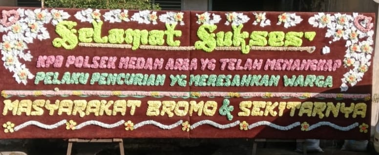 Keberhasilan tersebut mendapat apresiasi dari warga. Pada Jumat (14/2/2026), masyarakat Jalan Bromo mengirimkan papan bunga ucapan terima kasih ke Mapolsek Medan Area sebagai bentuk penghargaan atas kinerja aparat kepolisian.