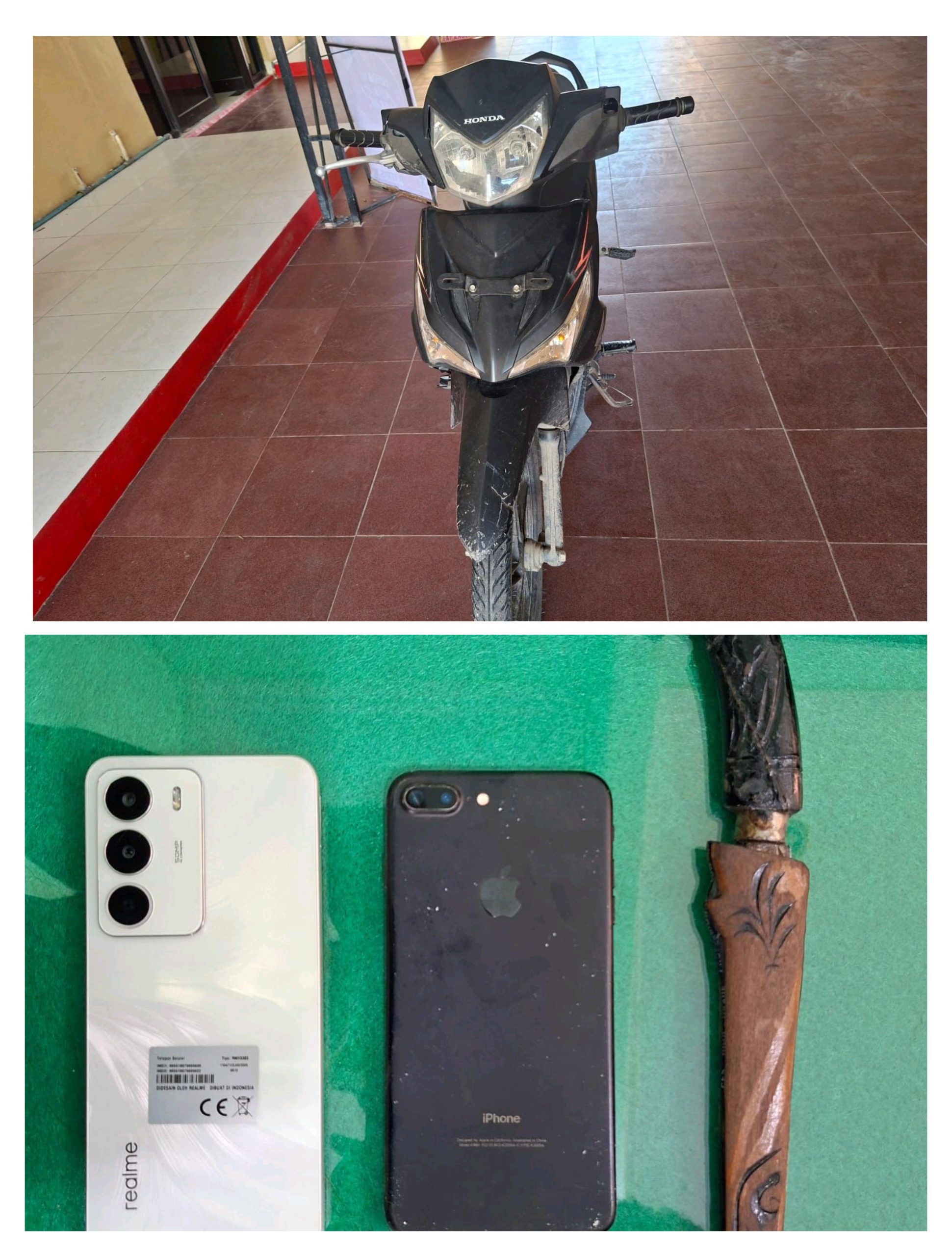 Saat dilakukan penangkapan, petugas menemukan ponsel Realme milik korban pada pelaku. Selain itu, MS juga kedapatan membawa sebilah senjata tajam jenis belati yang diselipkan di pinggangnya.