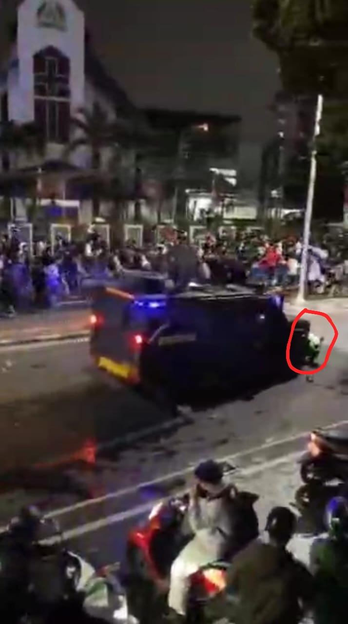 Sebelumnya, video amatir peristiwa tersebut viral di media sosial. Rekaman memperlihatkan mobil taktis Brimob melaju kencang membelah kerumunan massa. Seorang pengemudi ojol yang tidak sempat menghindar tertabrak hingga terlindas. Dalam rekaman itu terdengar teriakan panik warga. Massa yang marah kemudian berusaha mengejar dan merusak mobil barracuda, meski kendaraan tersebut akhirnya melaju menjauh.