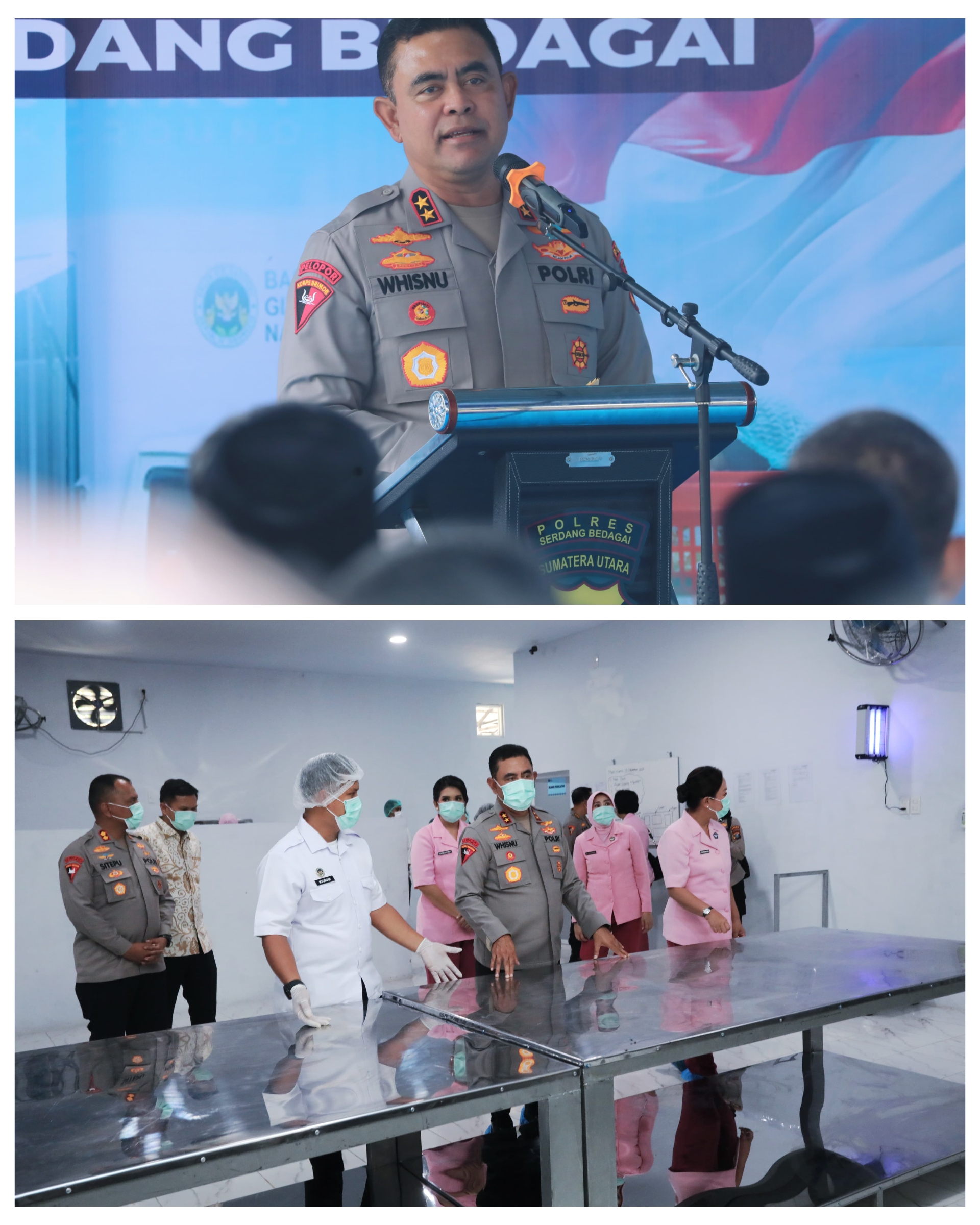 Dalam sambutannya, Kapolda Sumut mengucapkan apresiasi dan terima kasih kepada Pemerintah Kabupaten Serdang Bedagai, unsur Forkopimda, Polres Serdang Bedagai, serta seluruh pihak yang telah berkolaborasi hingga pembangunan fasilitas gizi ini dapat terlaksana sesuai harapan.