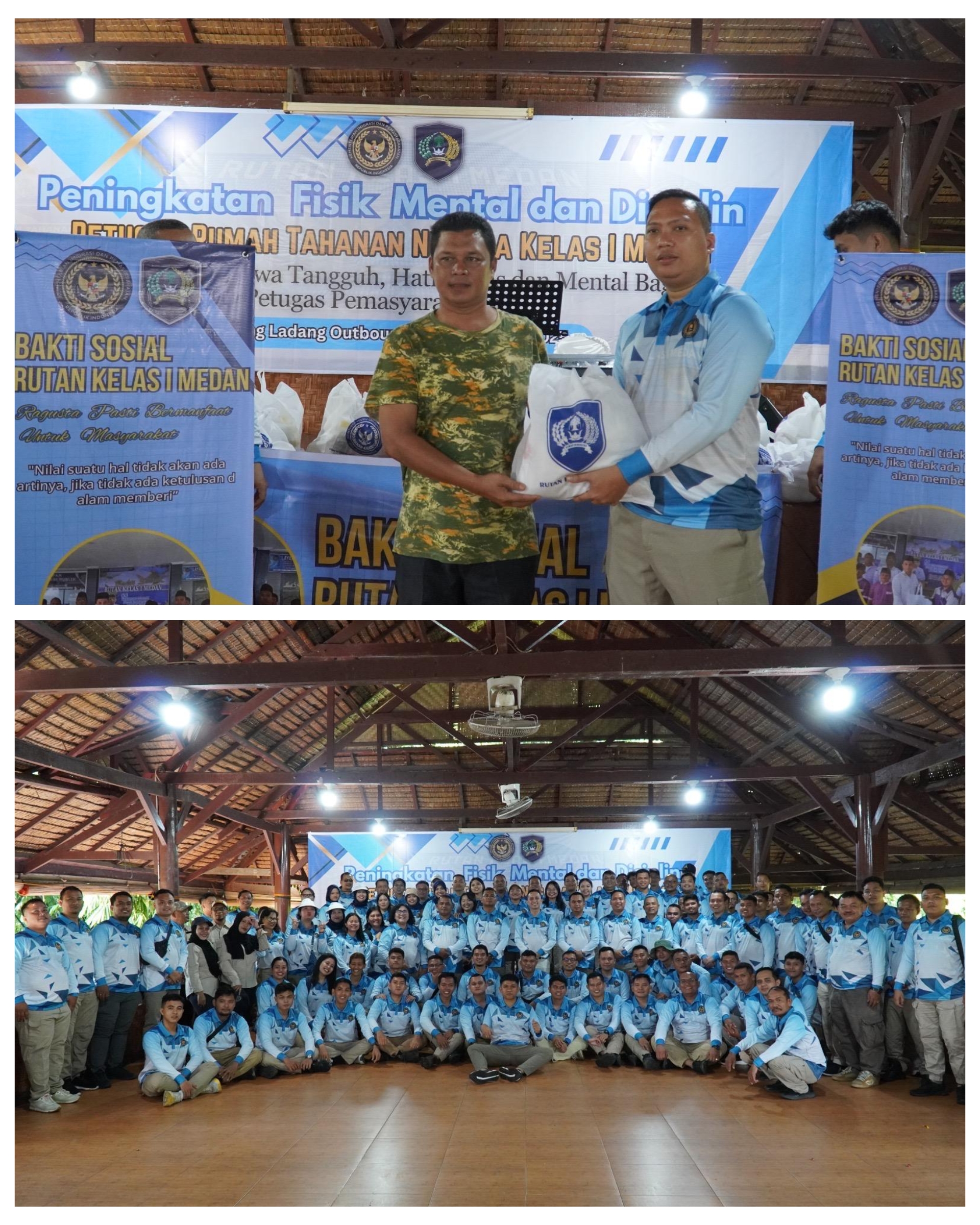 Medan — Pegawai Rutan Kelas I Medan melaksanakan kegiatan Fisik Mental dan Disiplin (FMD) yang berlangsung di Kampung Ladang Outbond, Sabtu (8/11/2025). Kegiatan ini tidak hanya menjadi wadah penguatan motivasi, kekompakan, serta pengembangan karakter pegawai, tetapi juga dirangkaikan dengan aksi kepedulian sosial berupa pembagian 50 paket bantuan sosial kepada masyarakat sekitar Kampung Ladang, masyarakat Dusun II Desa Sembahe Baru.