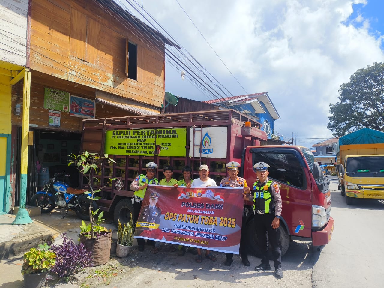 DAIRI// Dalam rangka pelaksanaan Operasi Patuh Toba 2025, Satuan Lalu Lintas (Satlantas) Polres Dairi melaksanakan kegiatan sosialisasi dan pemberian himbauan kepada pemilik pangkalan gas LPG serta sopir truk pengangkut gas. Kegiatan ini dilaksanakan di Jalan Merdeka, Kecamatan Sidikalang, Kabupaten Dairi. pada Jumat (18/7/2025).