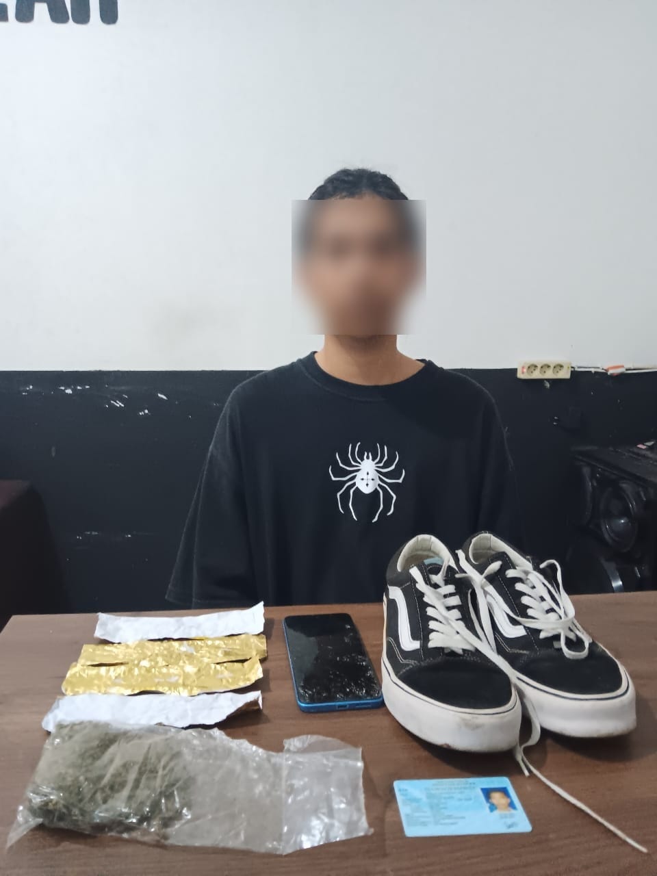 Dari hasil penggeledahan, tim menemukan 1 bungkus narkotika jenis ganja dengan berat bruto 20 gram, yang disembunyikan dibawah Telapak Sepatu Sebelah Kiri dan 1 unit handphone merk Redmi 10 warna biru. Terduga pelaku mengaku membeli narkotika tersebut dari seorang lelaki yang berinisal K, yang tinggal di Kompleks Pasar Lama, Kabupaten Sentani, Jayapura, seharga Rp 500.000.