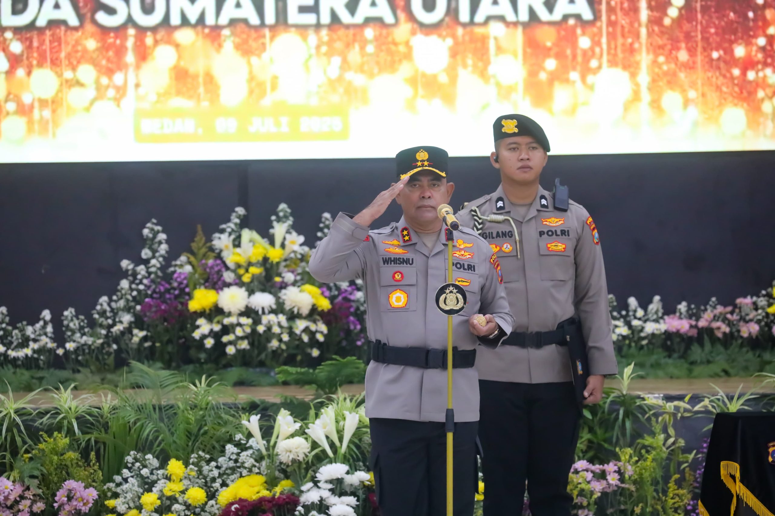 Upacara tersebut dipimpin langsung oleh Kapolda Sumut, Irjen. Pol. Whisnu Hermawan Februanto, S.I.K., M.H., dan dihadiri Wakapolda Sumut, Irwasda Polda Sumut, Ketua Bhayangkari Daerah Sumut beserta pengurus, serta seluruh Pejabat Utama dan Kapolres jajaran.